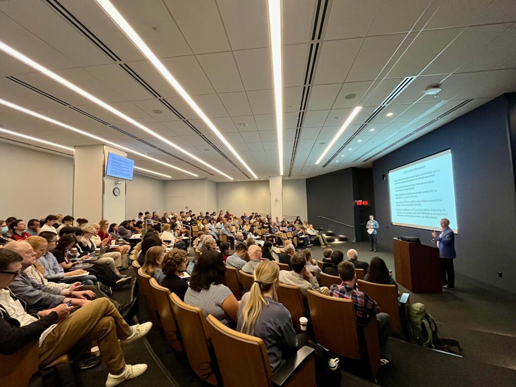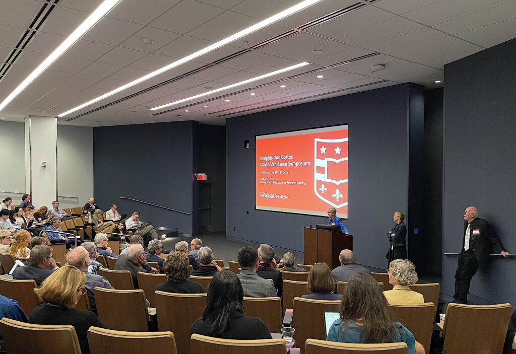 David Van Essen, PhD, who has been a member of the Department of Neuroscience since 1992 (serving as chair from 1992 to 2012), was celebrated for his contributions to neuroscience during the David Van Essen Symposium: Insights Into Cortex on Sept. 8-9, 2025, in the Jeffery T. Fort Neuroscience Research Building (NRB) Auditorium and NRB McDonnell Lobby.